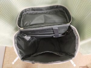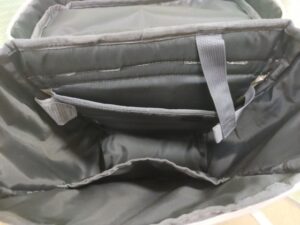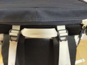 ドリンクホルダーの上下にある白いひもは、荷物の量によって狭く調節できるようですが、私は使いませんでした。