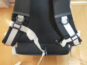 白いチェストベルトは、移動が少し面倒ですがなれれば簡単にできます。